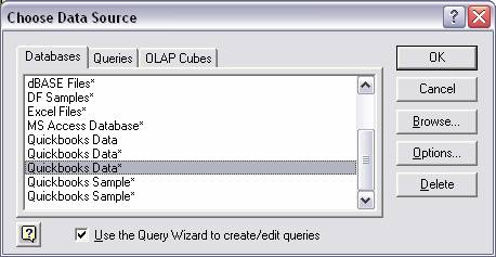 Select the Data Source that is currently opened in QuickBooks and click “OK”.