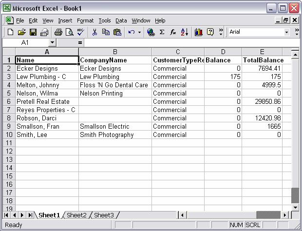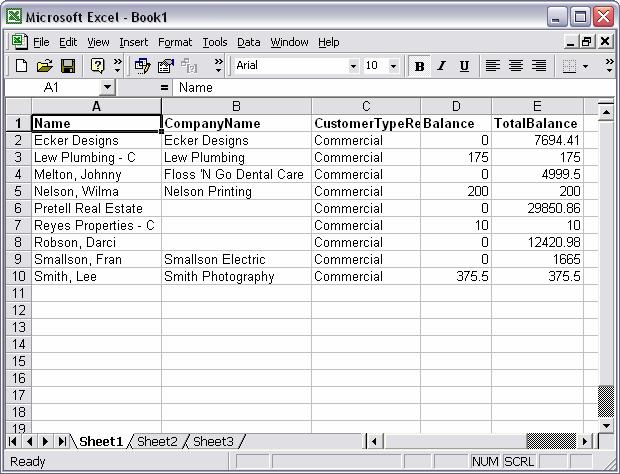 The data from your QuickBooks table is now included in your worksheet and the data remains connected to the QuickBooks table from which it was imported